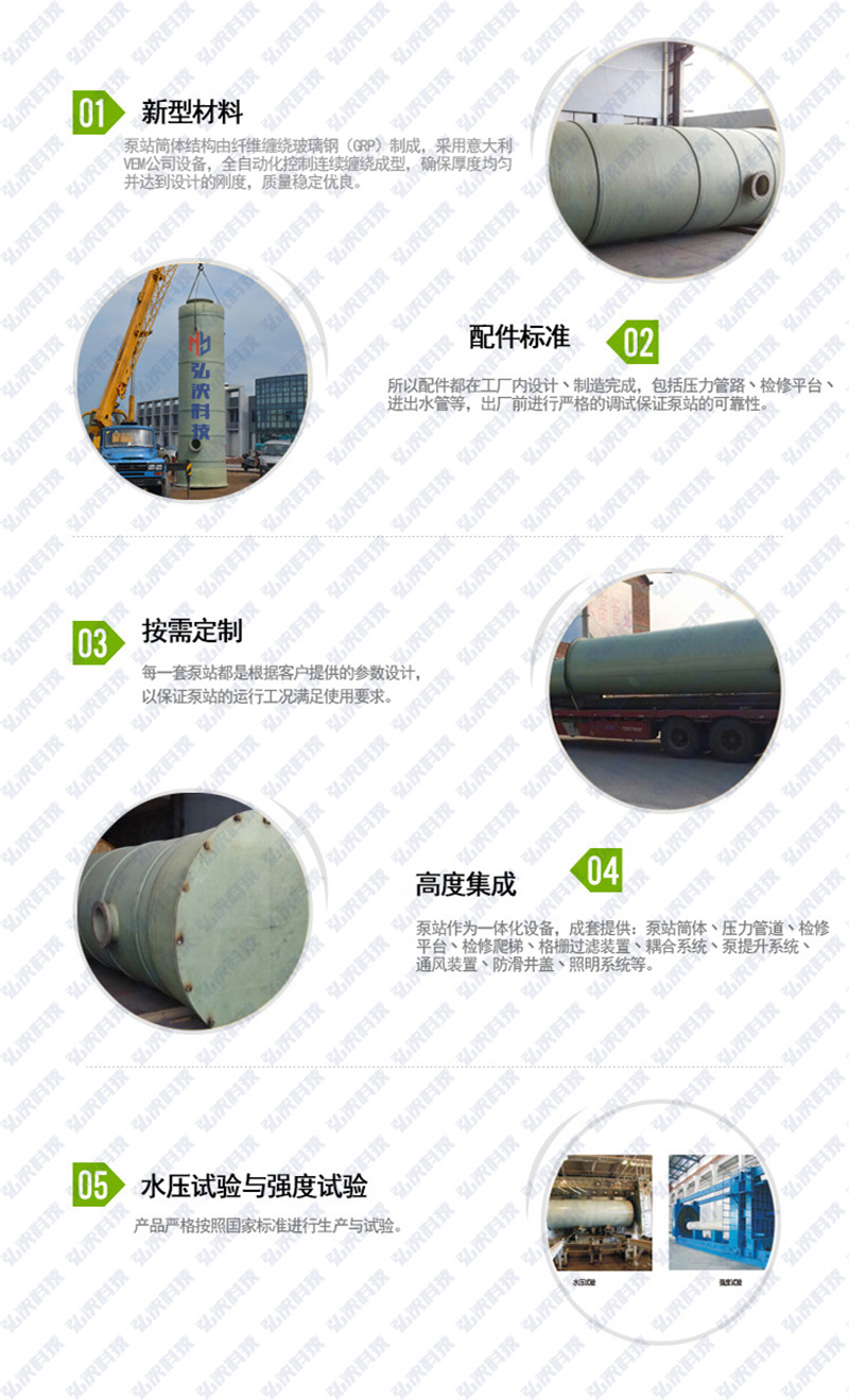 我們一體化污水泵站采用的是PPS玻璃鋼筒體,格蘭富水泵、 304不銹鋼附件、結(jié)實(shí) 耐用 耐腐,蝕泵站是通過(guò)水泵為水提供勢(shì)能和壓能, PPS的集成化程度非常高,管配件等設(shè)各在出「前就已經(jīng)安裝到位, 充分利用了筒內(nèi)的空間。 此外.還可以根據(jù)用戶(hù)需要配備電控設(shè)備.工作臺(tái) 清洗設(shè)施等,都能在PPS的有限空間里得到合理體現(xiàn).以粉碎型格出為例,粉碎型格相具有占地小.使用方便的功能.配以高后量的港污泵.粉碎后的小顆粒.雜質(zhì)可以遍過(guò)濳污泵直接泵出,而無(wú)需人工清渣.粉碎型格相配套子PPS只需表裝在進(jìn)水管路上.并加開(kāi)檢修井即可.幾手沒(méi)有增加任何土建工作,輕松達(dá)到格珊的效果。使得整套PPS設(shè)施保持緊緊湊實(shí)